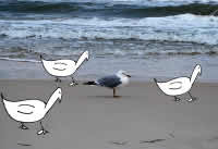 Hier am Strand gibt´s viel Wasser und viel Sand. Hier kannst du Schiffe fahren sehen und baden gehen.