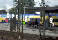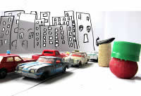 Hier siehst du uns im Stau stehen. Im Stau zu stehen ist nicht so schön.